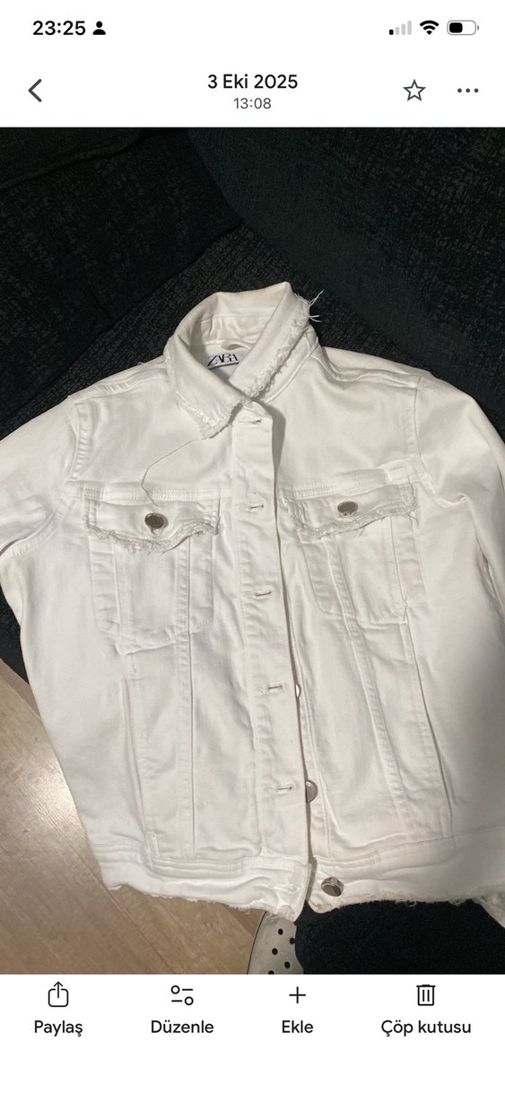 Düğmeli, notched lapel yakalı ve uzun kollu beyaz denim ceket. Normal boy ve regular fit kesime sahiptir, günlük rahat sokak stili için uygundur.