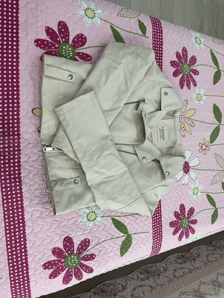 Düğmeli Beyaz Kadın Deri Ceket