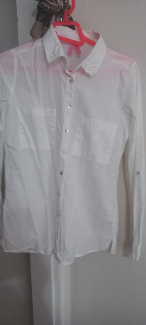 Pamuklu, düğmeli, uzun kollu beyaz kadın gömleği, normal boyda ve sade tasarımlıdır. Günlük kullanıma uygundur. S BEDEN OLUR