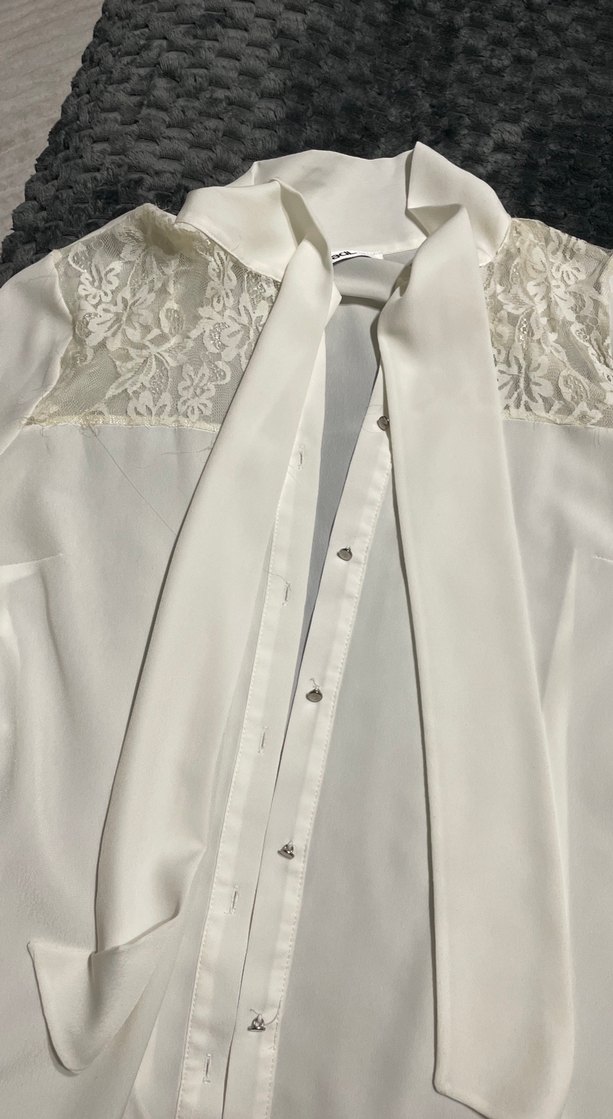 Düğmeli, yakalı beyaz kadın gömleği, uzun kollu ve nakışlı dantel detaylıdır. İpek gibi yumuşak kumaştan, normal kesimdir .