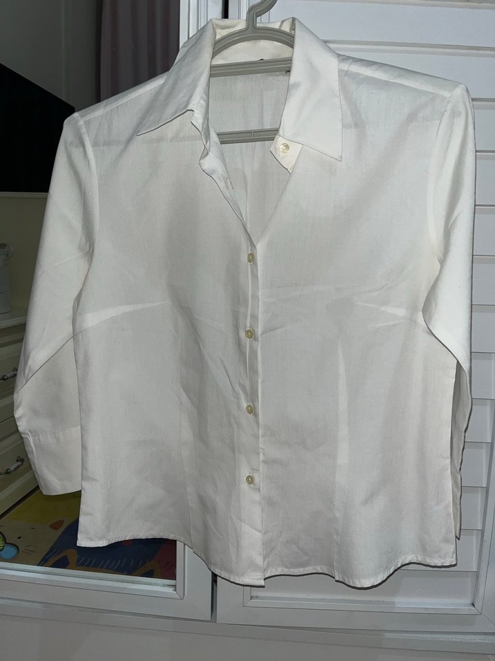 Beyaz kadın gömlek. Normal kesim ve midi uzunlukta, iş ortamına uygun sade tasarım. ✨