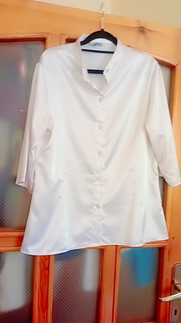 Düğmeli, yakalı beyaz kadın gömleği, kısa kollu ve normal kesimdir. İpeksi dokusu ile günlük kullanıma uygundur. ✨saten önden düğmeli olup hakim yaka çok şık rahat bir ürün hiç bir sorunu deformasyon yoktur 40 beden dir