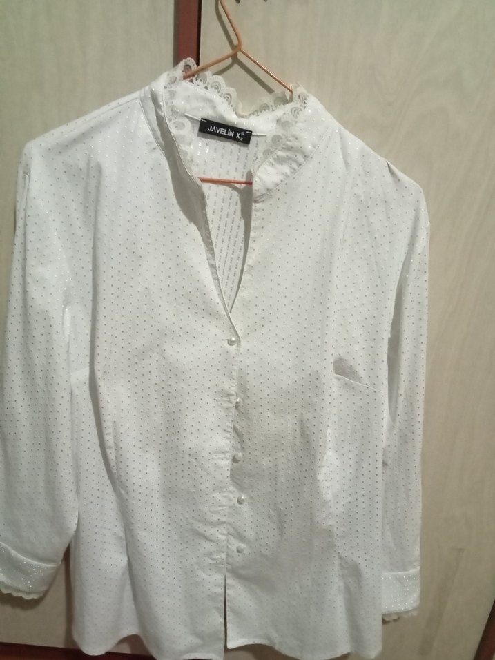 Beyaz kadın gömlek, yakalı ve düğmeli ön kısma sahiptir. Uzun kollu ve düzenli kesimdir, yumuşak pamuk kumaştan üretilmiştir. Günlük ve rahat stil için uygundur.