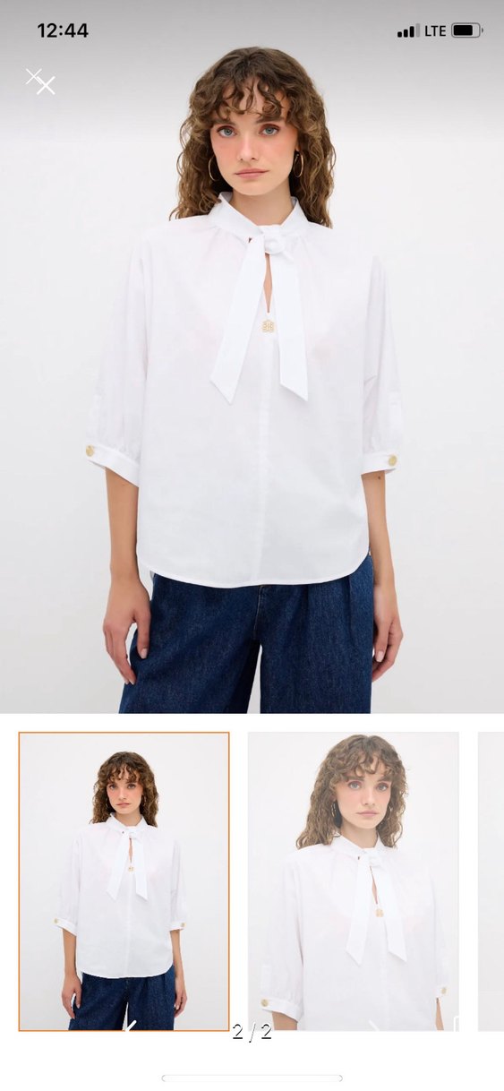 Pamuk kumaştan yapılmış beyaz gömlek, yakasında bağlama detayı ve düğmeli kısa kollara sahiptir. Rahat kesimi ve midi boyu ile ofis kullanımı için uygundur. Desensiz, sade normcore tarzda.