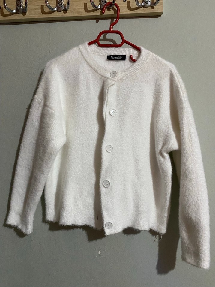 Düğmeli Beyaz Kadın Hırka - Görsel 1