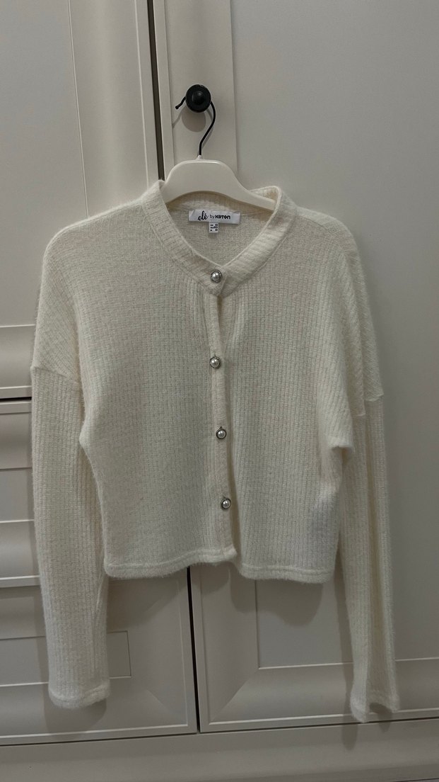Düğmeli Beyaz Kadın Hırka