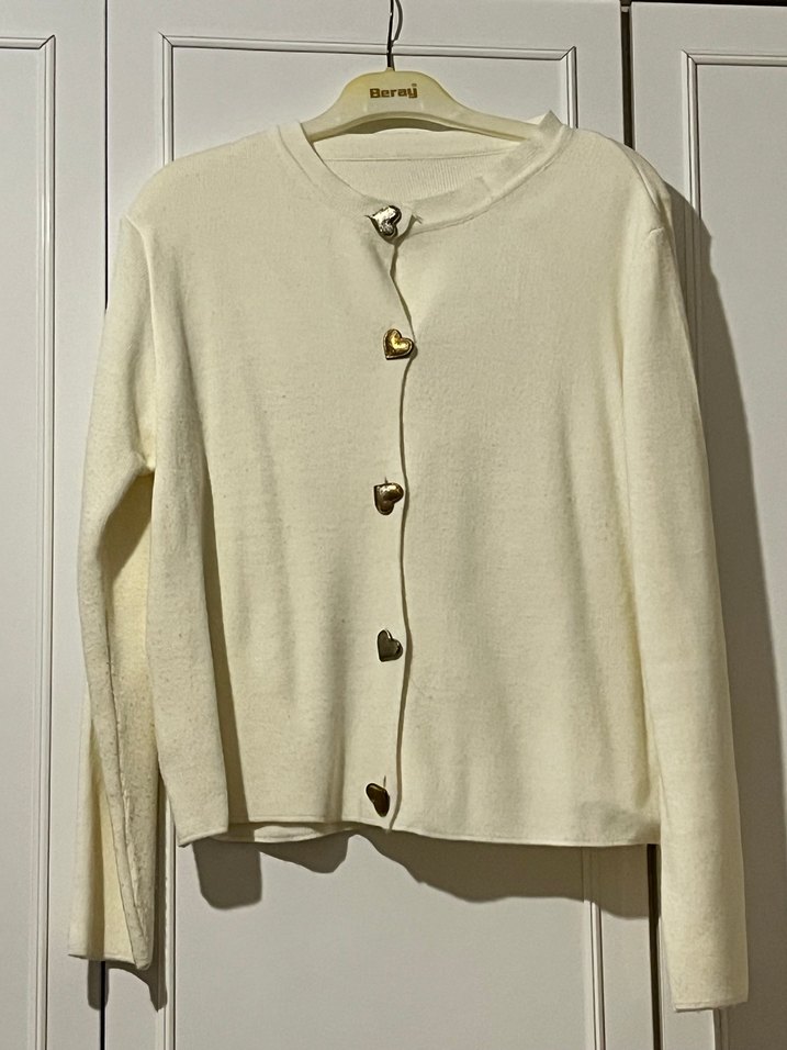 Düğmeli Beyaz Kadın Hırka