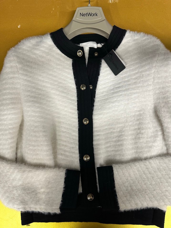 NetWork markalı, düğmeli, beyaz yün hırka. Uzun kollu, bisiklet yaka ve vücuda oturan kesime sahip, günlük kullanıma uygun sade tasarım.