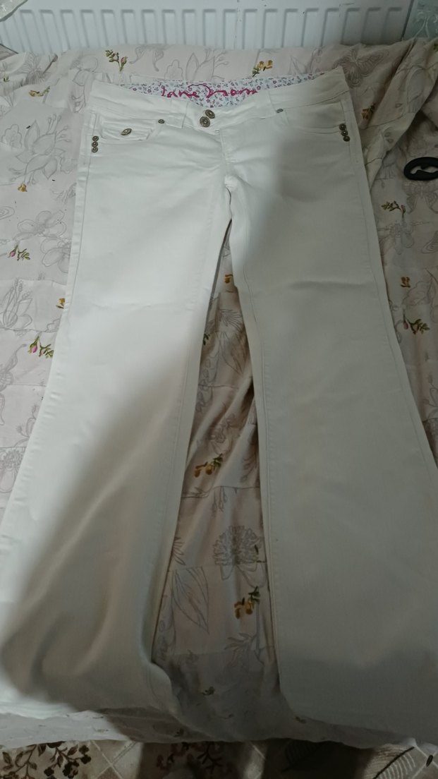 Düğmeli Beyaz Kadın ispanyol paça Pantolon