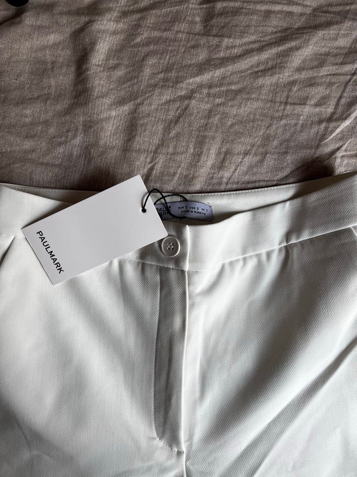 Düğmeli Beyaz Kadın ispanyol paça pantolon