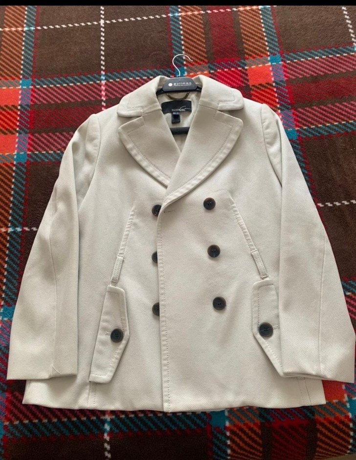 Düğmeli önü ve kesik yaka detayı olan krem kadın kaban. Uzun kollu, normal kesim ve kalın kumaştan üretilmiştir, günlük kullanım için uygundur.
