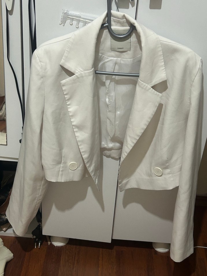 Düğmeli Beyaz Kadın kısa Blazer Ceket