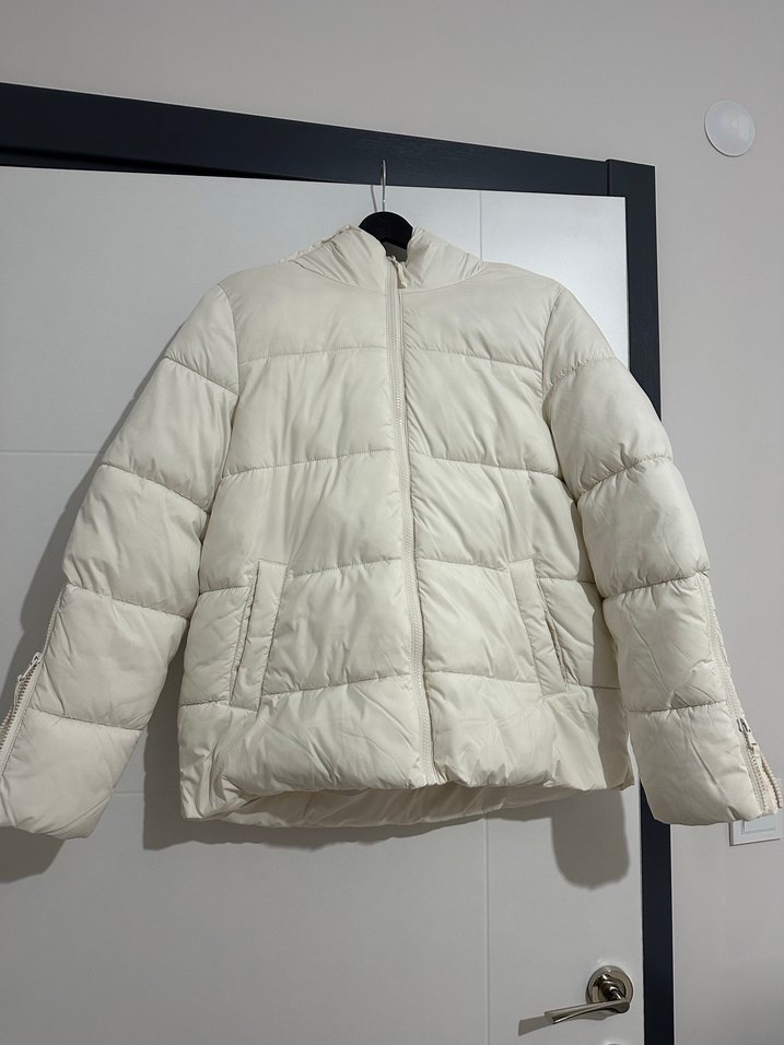 Düğmeli, yüksek yakalı beyaz kadın kışlık mont. Yumuşak ve sıcak kumaştan, uzun kollu, midi boy ve dar kesimdir. Günlük kullanıma uygundur. ❄️