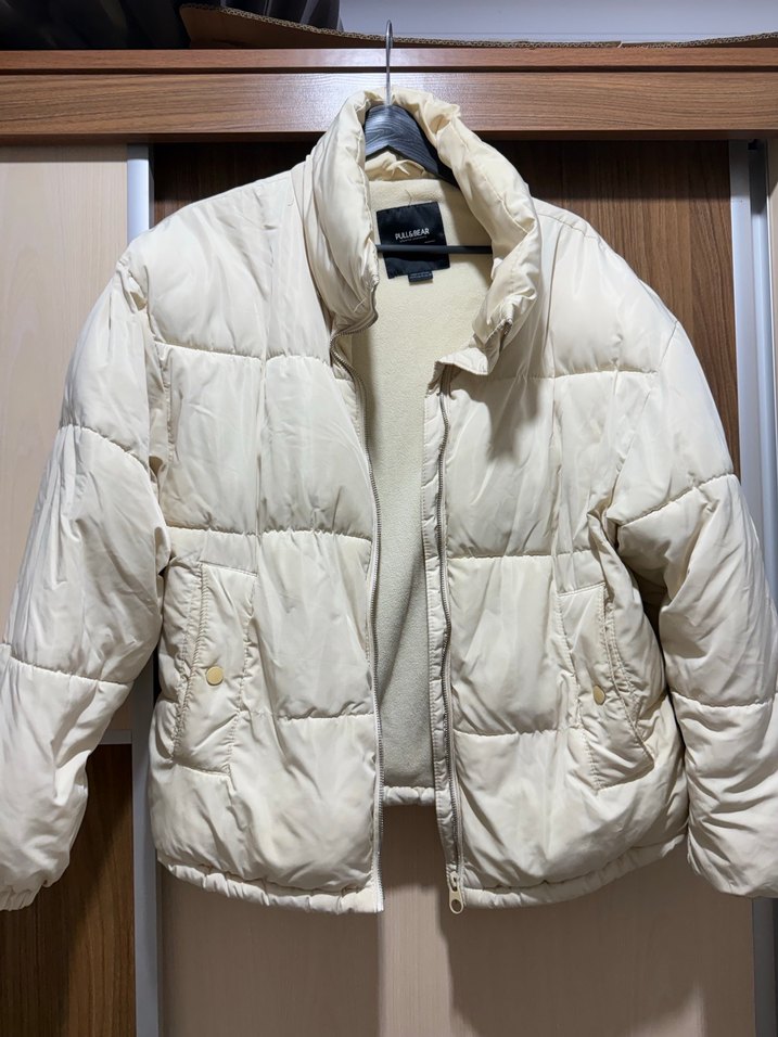 Düğmeli, uzun kollu, fitted kesim ve midi boy beyaz kadın kışlık mont. Yumuşak, sıcak kumaştan, notched lapel yakalı, günlük kullanıma uygun rahat tarzda. ❄️ Bana çok çok büyük olduğu için satıyorum. Hiçbir problemi yok. İçinin polarlı olmasından dolayı çoook sıcak tutuyor. Kenarı büzgülü ayarlanabilir.