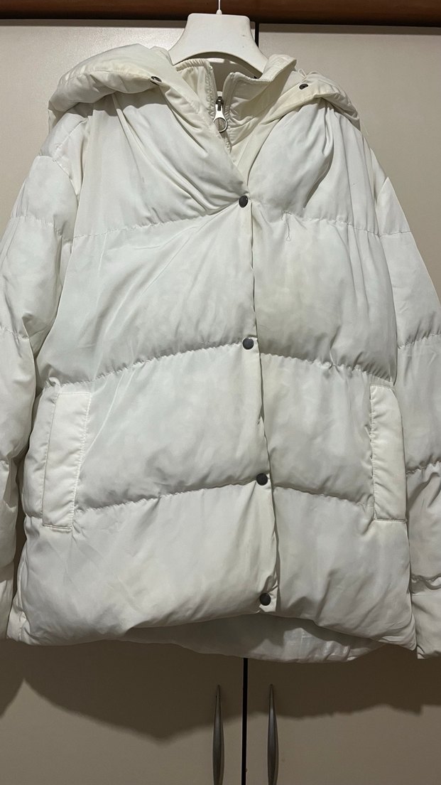 içinde ayrıyeten fermuarlı kısmı var çıkmıyor düğmeyi kapatınca gözükmüyor, sararma var birkaç yerinde yıkanınca çıkar mı bilmiyorum bu deformeden dolayı çok uygun fiyata koyacağım, çok sıcak tutuyor özdilekten almıştım