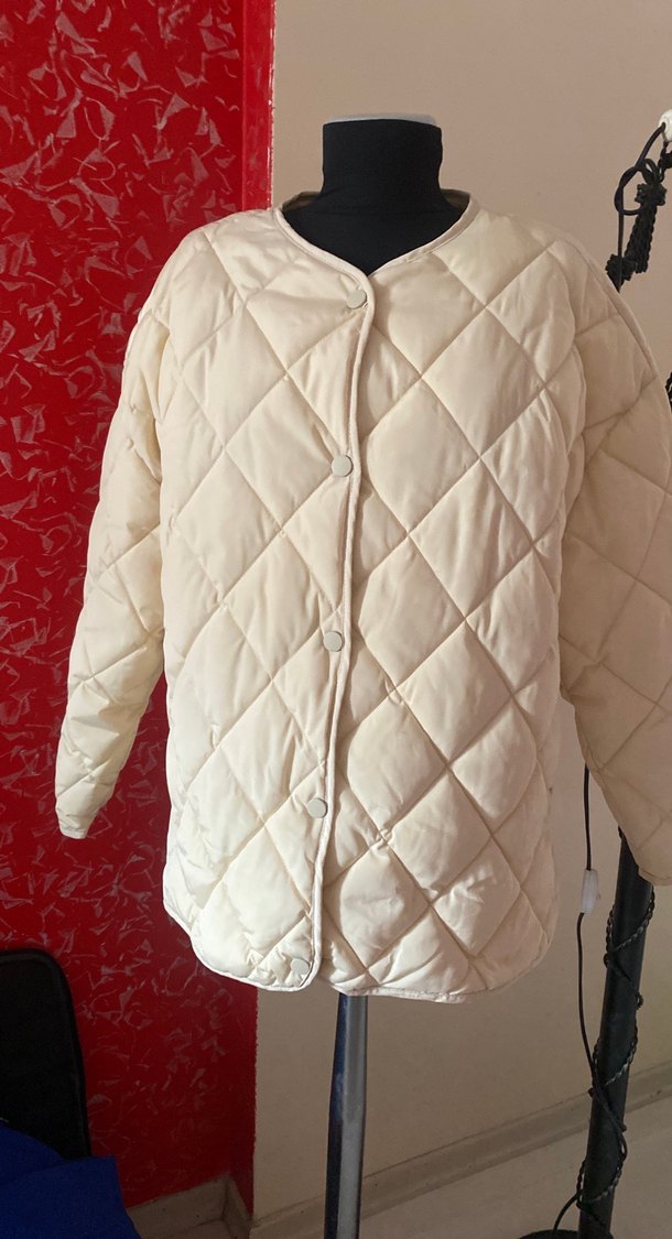 Düğmeli, notched lapel yakalı beyaz kadın kışlık mont. Uzun kollu, midi boy ve bol kesim, yumuşak ve sıcak kumaştan yapılmıştır. Rahat sokak stili için uygundur. ❄️