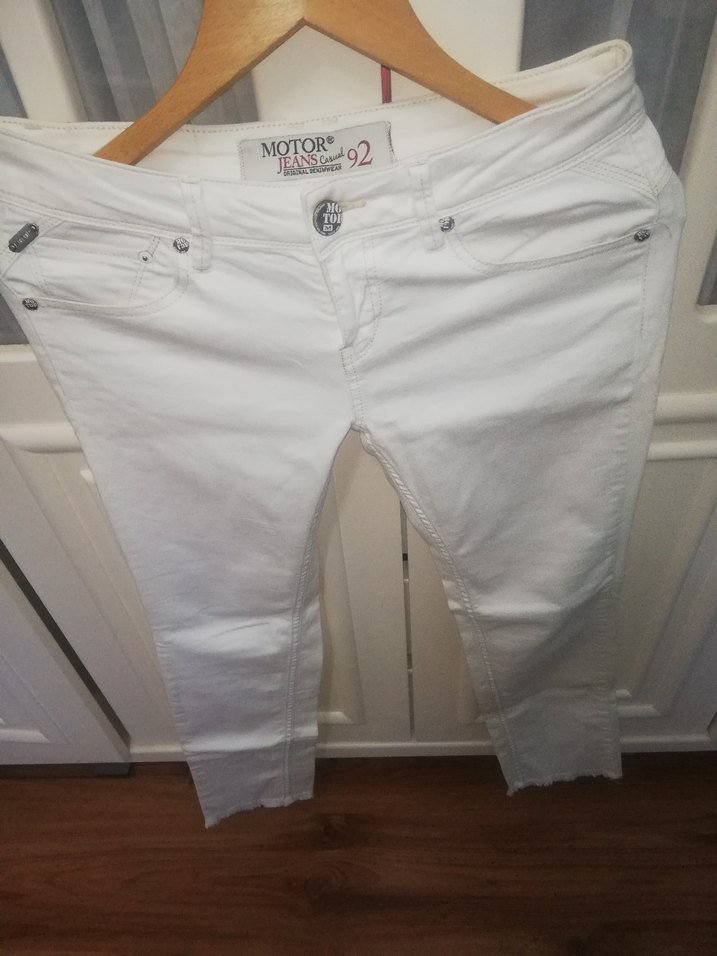 Düğmeli, midi boy, beyaz pamuklu kot pantolon. Günlük rahat kullanım için uygun. Marka: MOTOR92. Hanımlar Kaliteli marka orjinal zayıf kısa boylu hanımlar için likralı üzerinizde çok güzel duruyor 2 kere giyildi yenidir Mağaza satış fiyatı 800 lira bendeki fiyatı sadece 500 lira yok artık şaka gibi ama gerçek bedava bedava size gerçekten çok fazla indirim yaptım zararına satış yapıyorum pazarlık yoktur fiyat sondur lütfen daha fazla indirim istemeyin bu güzel fırsatı kaçırmayın hanımlar takasta yapıyorum