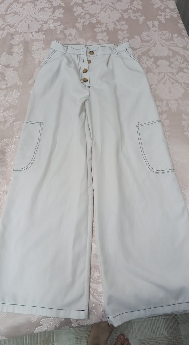 Düğmeli , bol kesim beyaz, kumaş pantolon, günlük rahat sokak stili için uygundur. Desensiz ve konforludur. tertemizdir kilo aldığım için çok giyemedim yeniden farksızdır