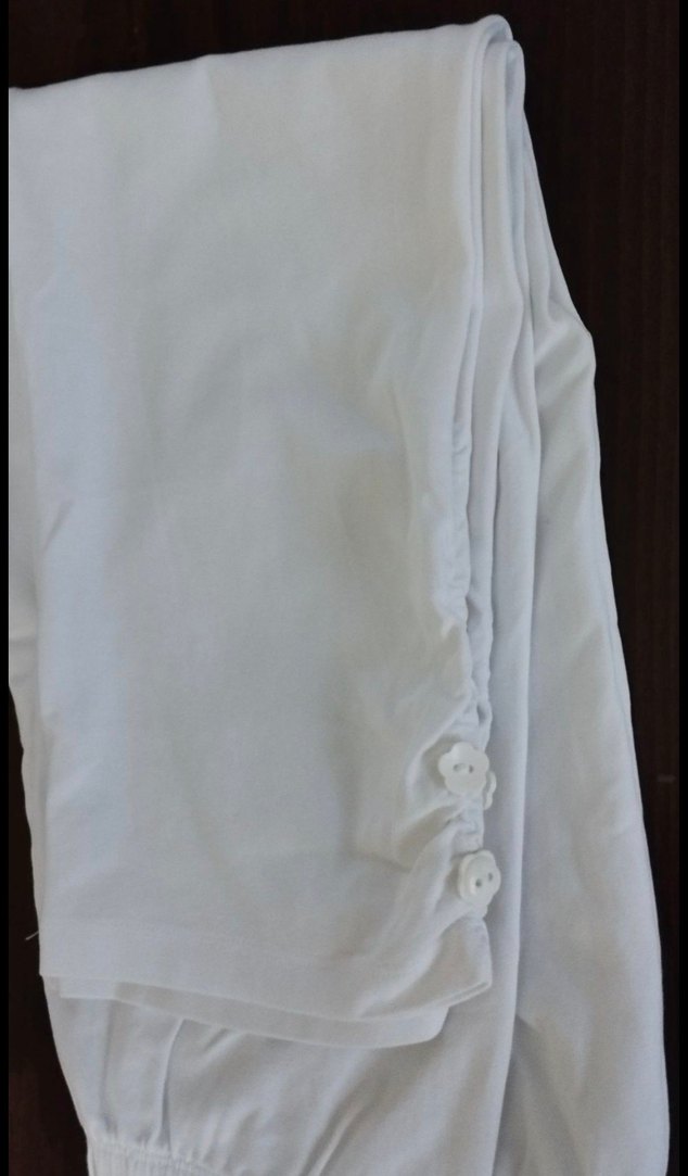 Düğmeli, beyaz pamuk kumaştan, paçada yanlarında düğme detaylı giyilmemiş etiketsiz tayt