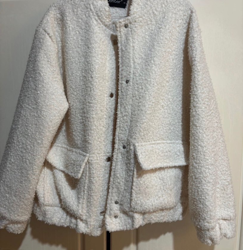 Düğmeli, uzun kollu, bol kesim beyaz kadın midi ceket. Yumuşak ve rahat kumaştan, kesik yakalı ve cep detaylıdır. Günlük sokak stili için uygundur. ❄️