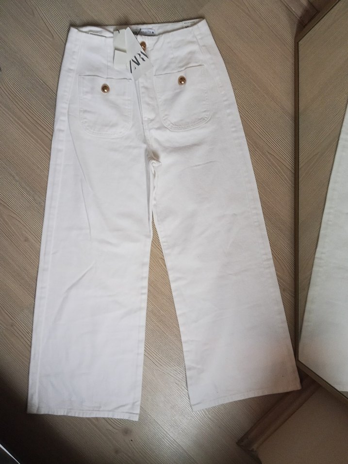 Düğmeli Beyaz Kadın Midi Kot Pantolon