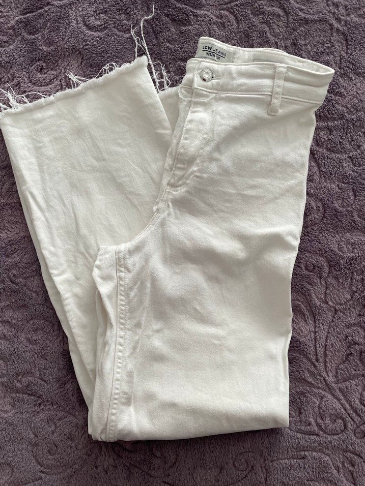 Düğmeli Beyaz Kadın Midi Kot Pantolon