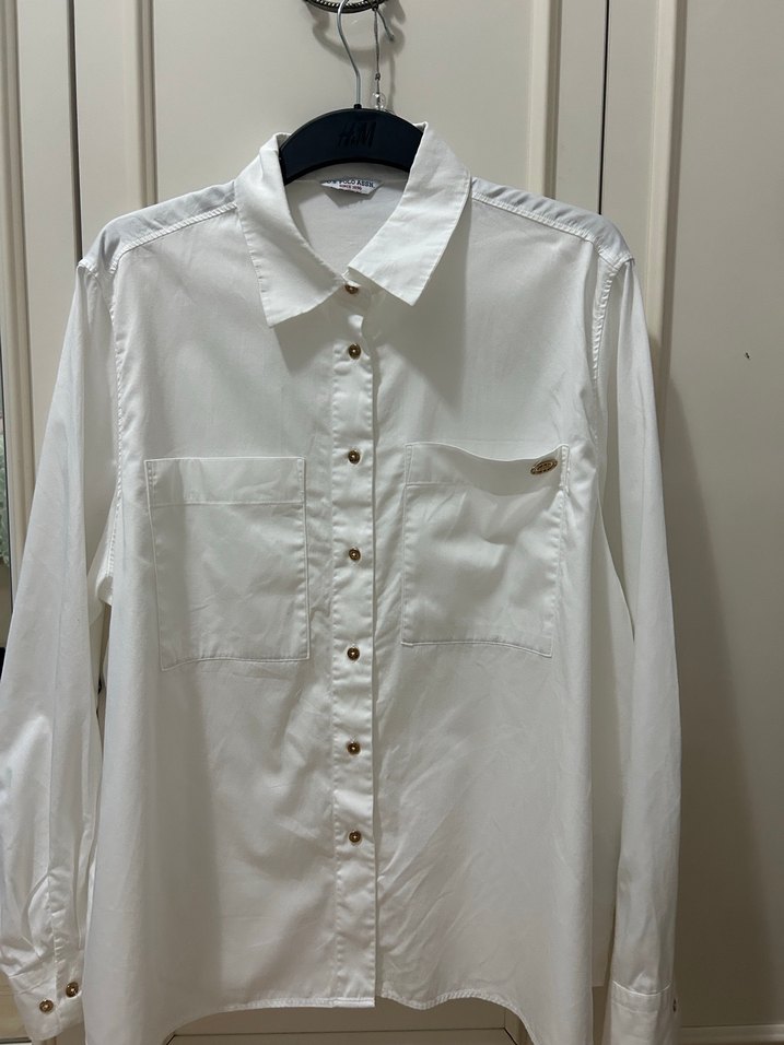 Düğmeli, uzun kollu, yakalı beyaz pamuk gömlek. Normal boy ve regular kesim ile günlük rahat stil için uygundur. ✨