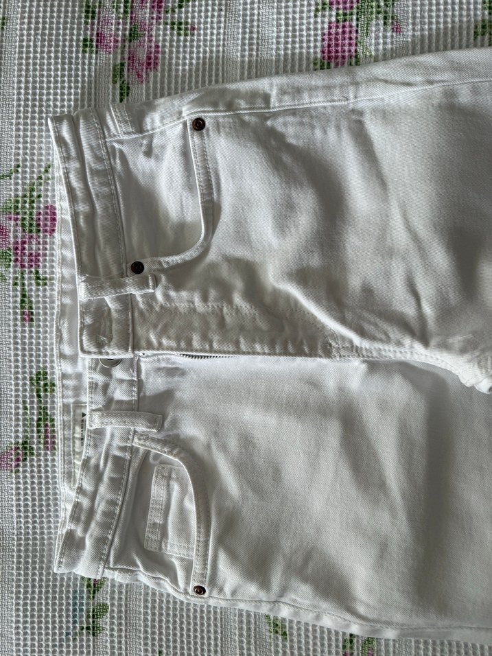 Düğmeli beyaz pamuklu kadın jean, normal boyda ve regular fit kesimlidir. Günlük kullanıma uygundur. Hiç bir kusuru yok. Katlı oldugu için kırışık duruyor hiçbir kusuru yoktur.