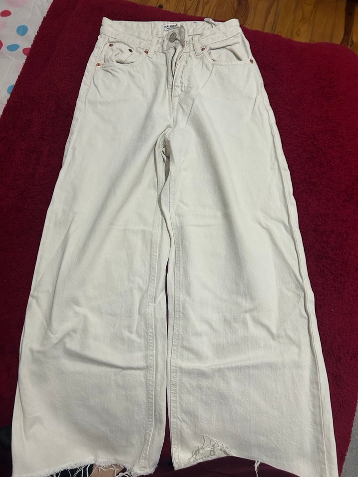 Düğmeli Beyaz Kadın Pamuklu Salaş Jean