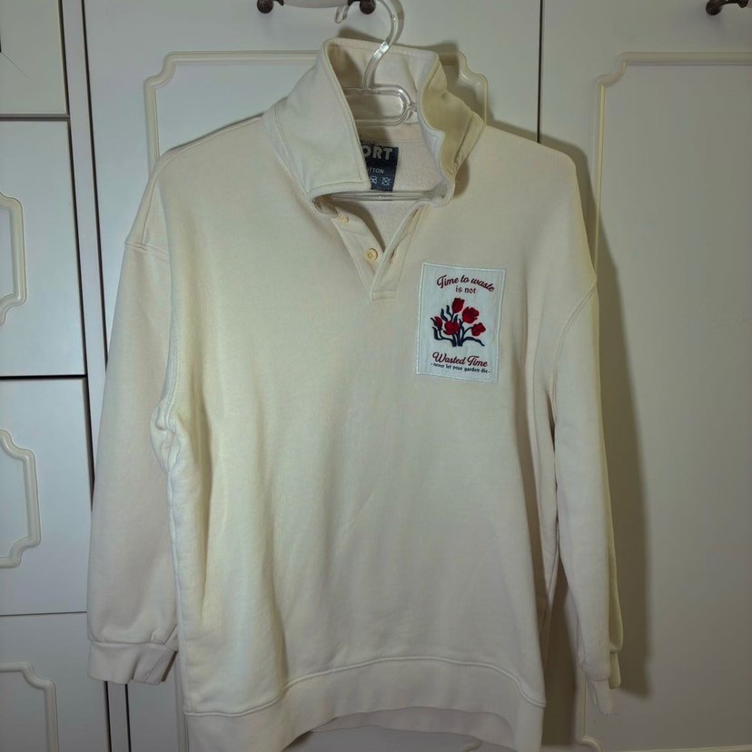 Düğmeli Beyaz Kadın Sweatshirt S
