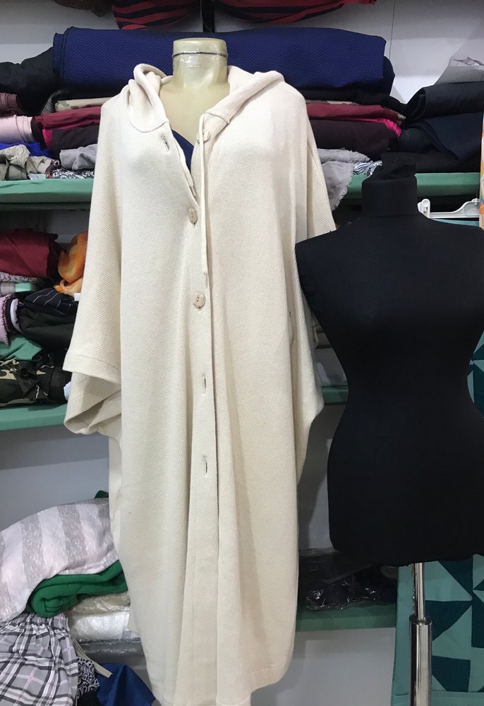 Düğmeli Beyaz Kadın Uzun Abaya Panço