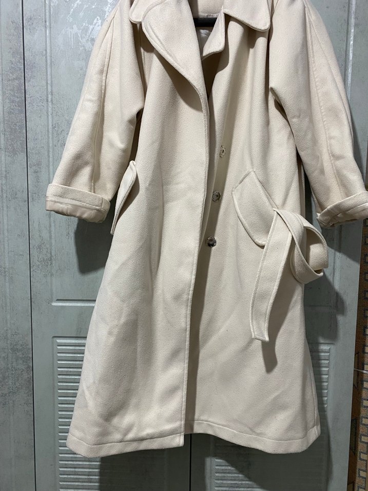 Düğmeli, yakalı ve uzun kesim beyaz kaban. Düzenli kesim, askılı kollar, kemerli ve pastel tonlarda, sadece iki kez tek giyildi kilo aldığım için bana olmuyor o sebeble satıyorum.Alıcıya yıkanıp ütülenip gönderilecektir.