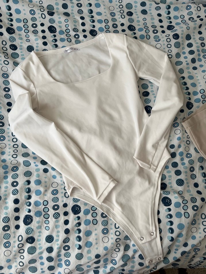 Pamuklu, uzun kollu, bisiklet yaka beyaz bluz. sonda üsste durusu mevcut fazla beyaz bluzum oldugu icin satiyorum hic giyilmedi