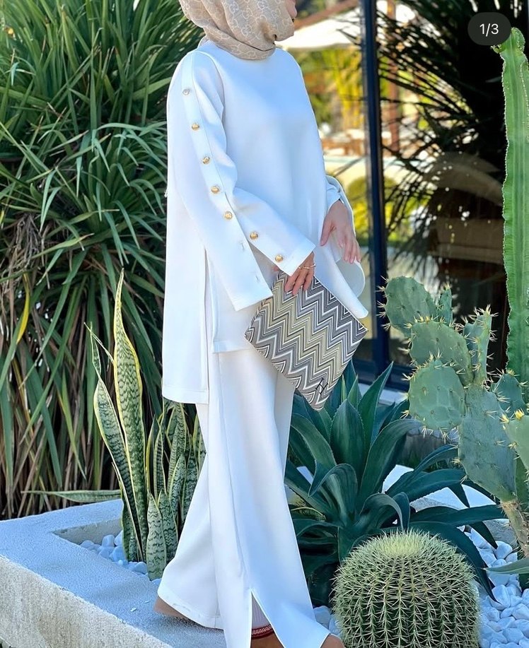 Düğmeli, nakış detaylı, uzun beyaz kadın takımı. Strappy kollu ve kesimli yakalı, sentetik kumaştan, günlük kullanım için uygundur. Boğazlı bir üründür pantolon beli lastiklidir scuba kumaştır pantolon kenarlarında yırtmam detayı vardır çok severek kullandım küçük geldiği için satışa çıkarıyorum 1 bedendir 36/38 uyumludur