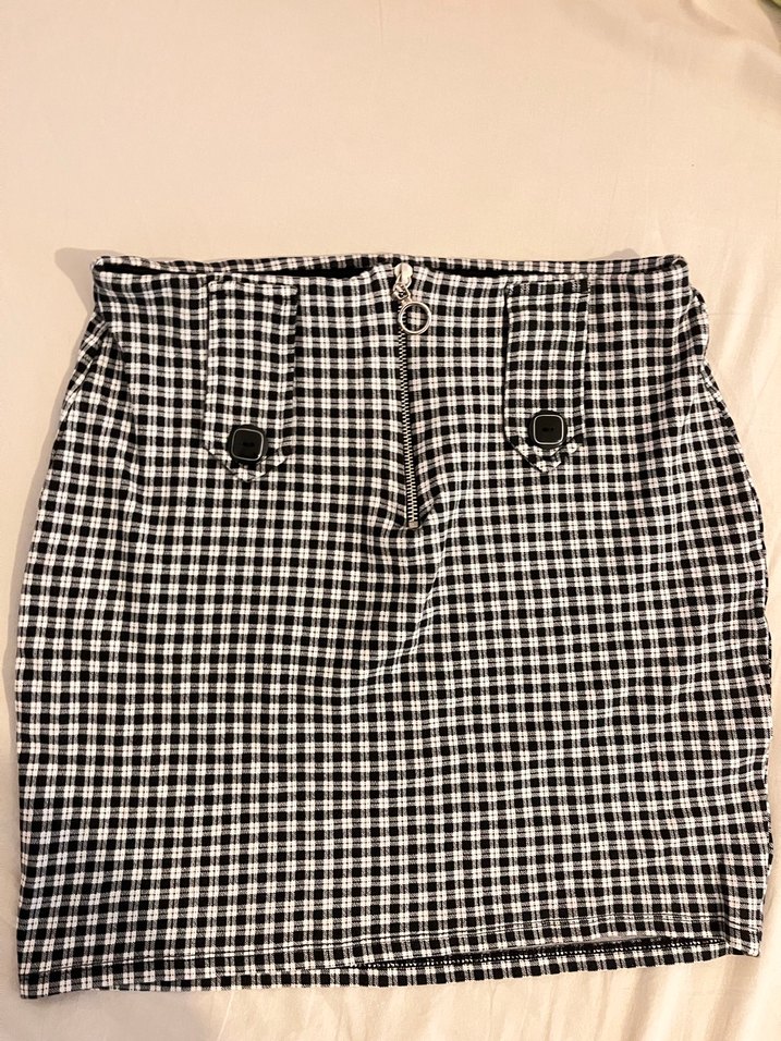 Düğmeli detaylara sahip, penye mini etek. M bedene uygundur.