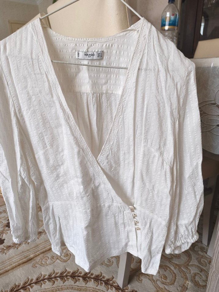 Düğmeli, V yaka, uzun kollu, bol kesim beyaz keten bohem tarzda kadın bluz. Günlük kullanıma uygun normal boyda.