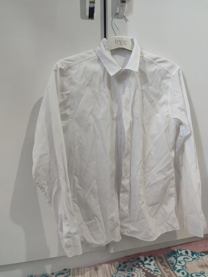 Düğmeli Beyaz Keten Erkek Gömlek çocuk gömlek 10- 12 yaş için