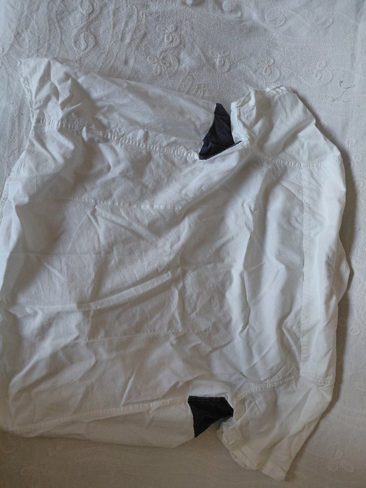 Düğmeli, keten kumaştan yapılmış beyaz, bol kesim hamile gömleği. Kısa kollu, yakası kırmalı ve normal midi boydadır, minimalist günlük kullanıma uygundur. Ankara içi elden teslim