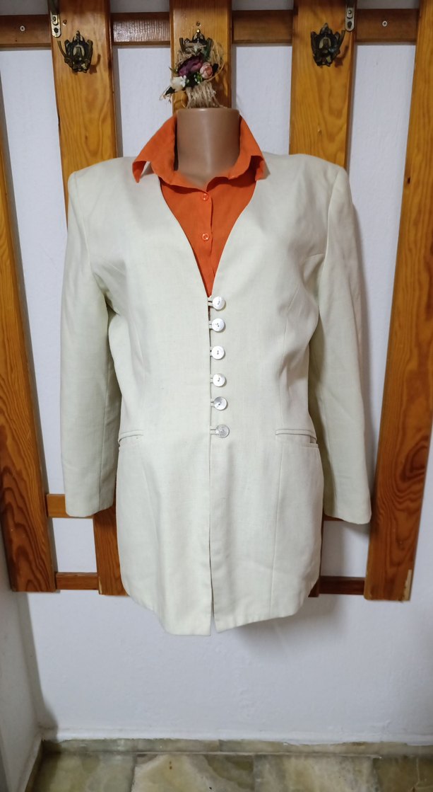 Düğmeli Beyaz Keten Kadın Blazer