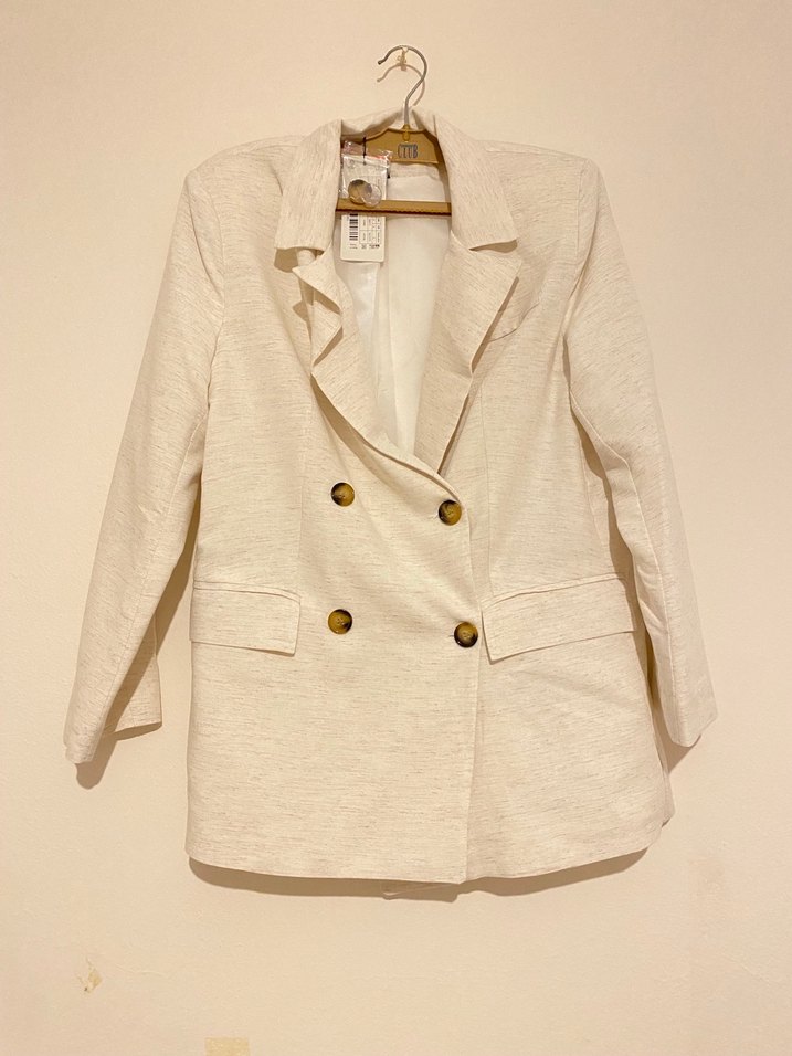 Düğmeli Beyaz Keten Kadın Blazer