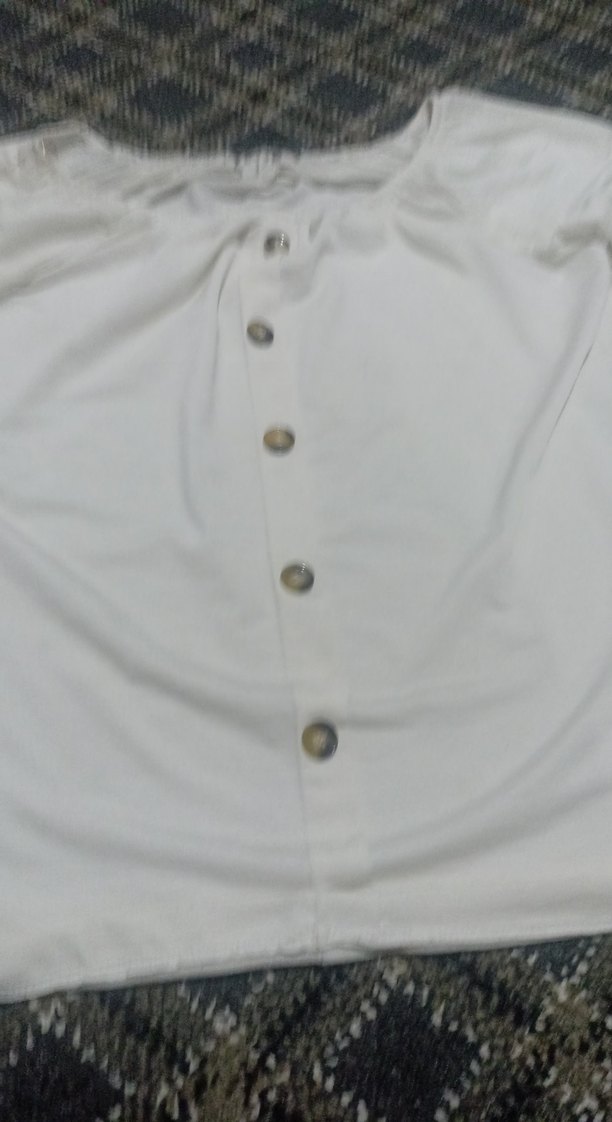 Düğmeli ön kısmı ve kayık yaka detayıyla bol kesim beyaz keten bluz. Kısa kollu, günlük ve sokak stiline uygun rahat bir tasarım.