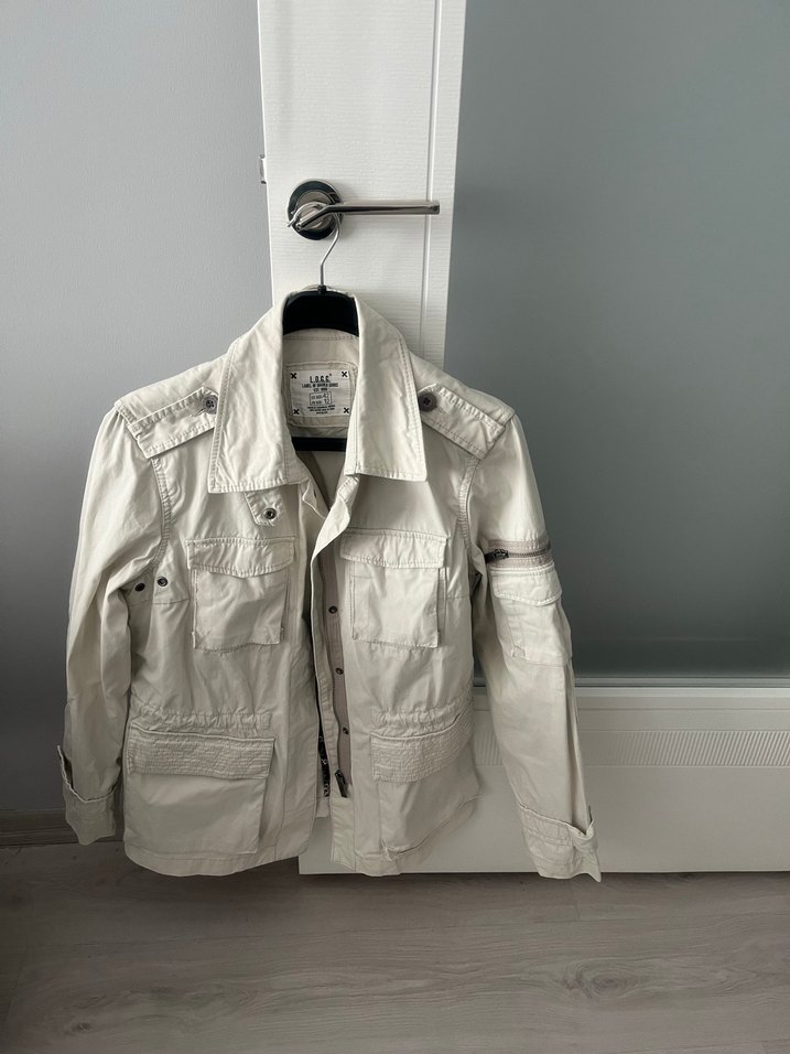 Düğmeli kapamalı, keten kumaştan yapılmış beyaz kadın ceket. Normal kesim, uzun kollu ve cepli, günlük kullanım için uygundur. 40-42 beden uyumlu
