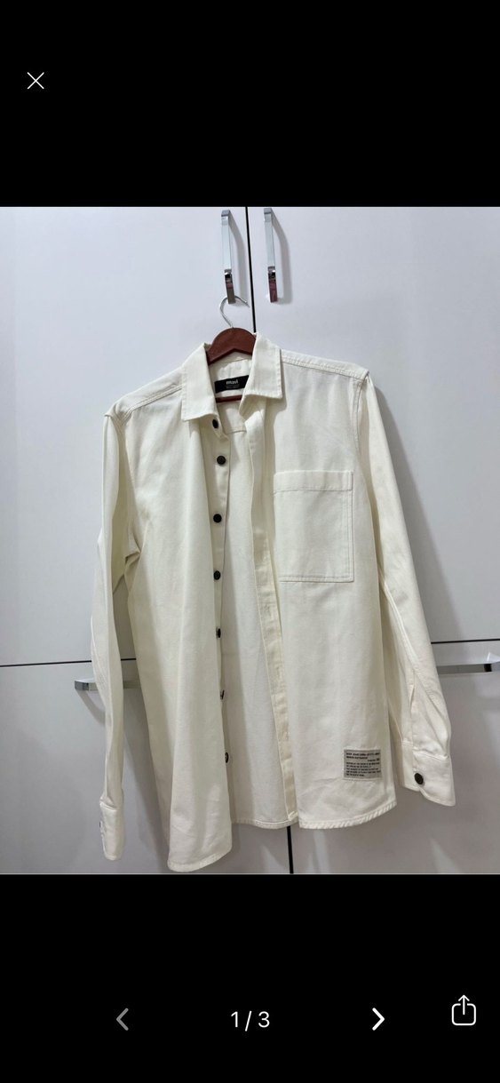 Beyaz keten kadın gömlek, düğmeli ve kesik yakalıdır. Uzun kollu, regular fit ve midi boyda, günlük rahat kullanıma uygundur.
