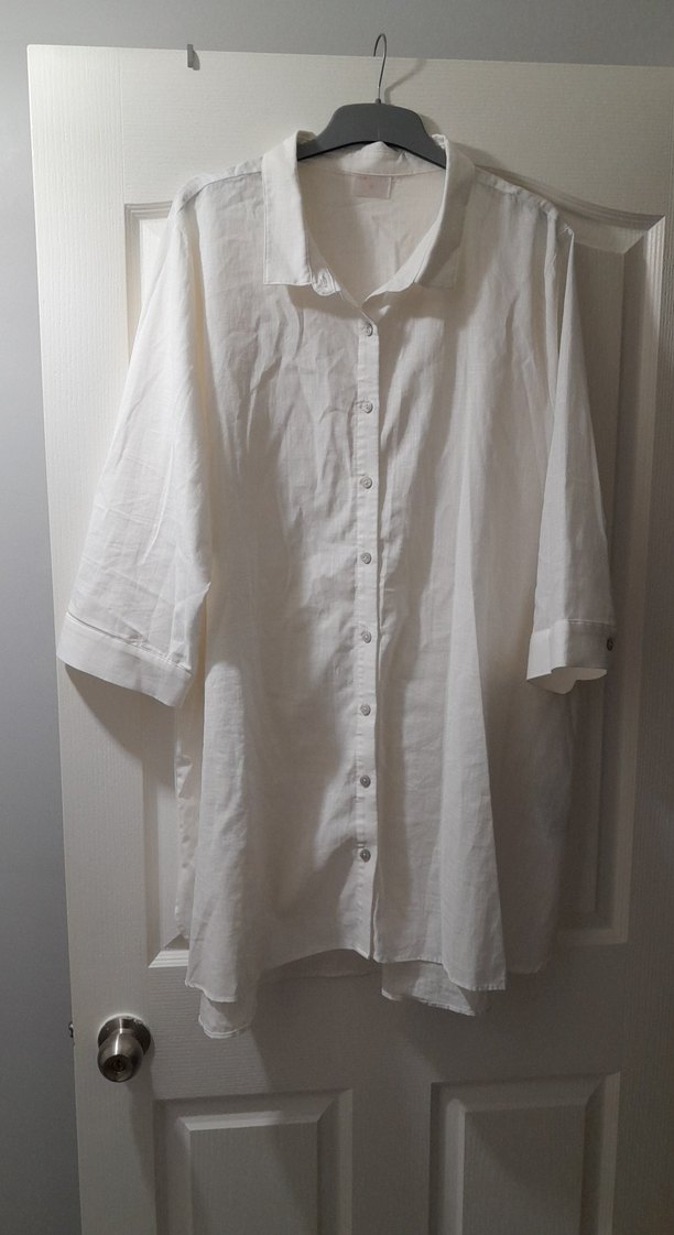 Düğmeli Beyaz Keten Kadın Gömlek