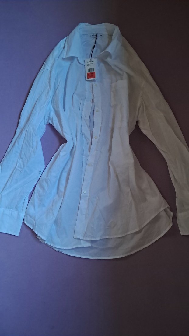 Beyaz keten kadın gömlek, düğmeli, uzun kollu ve yakalıdır. Rahat kesimi ve normal boyuyla gündelik kullanıma uygundur.