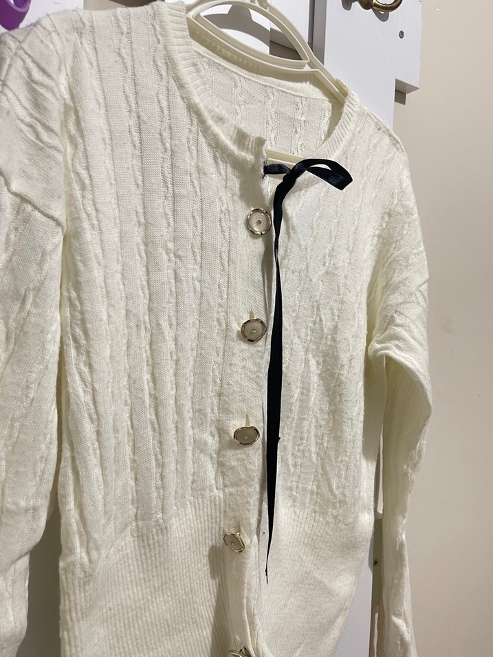 Düğmeli, uzun kollu, beyaz hırka. Salaş kesimi ve yuvarlak yakasıyla bohem tarzını yansıtır, günlük kullanıma uygundur. Temizdir bi kere giyildi