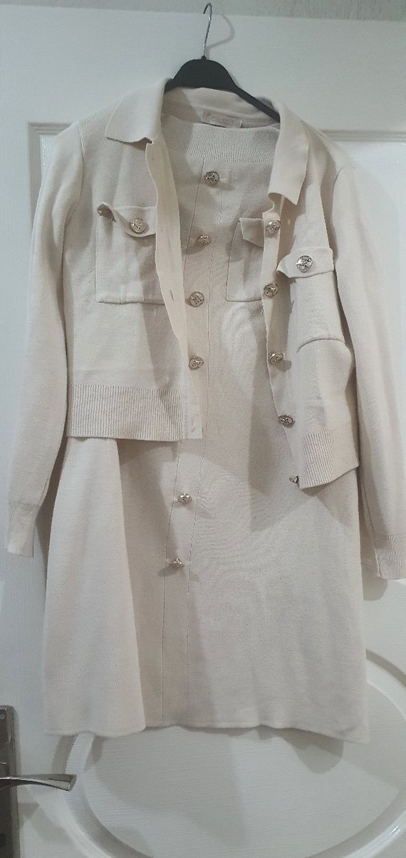 Düğmeli Beyaz Keten Kadın Takım Elbise