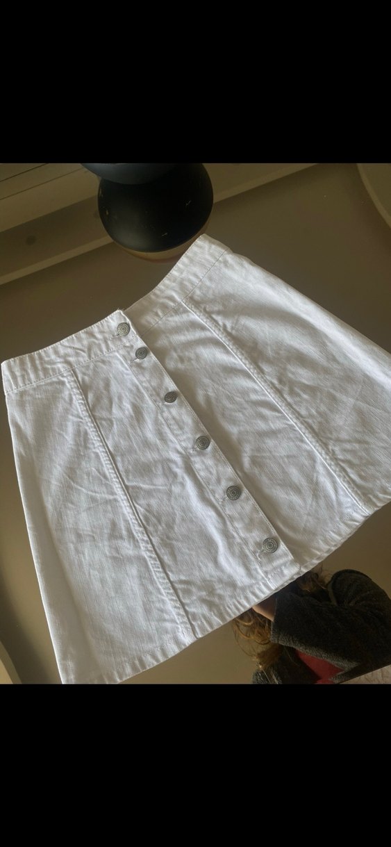Düğmeli Beyaz Keten Midi Etek