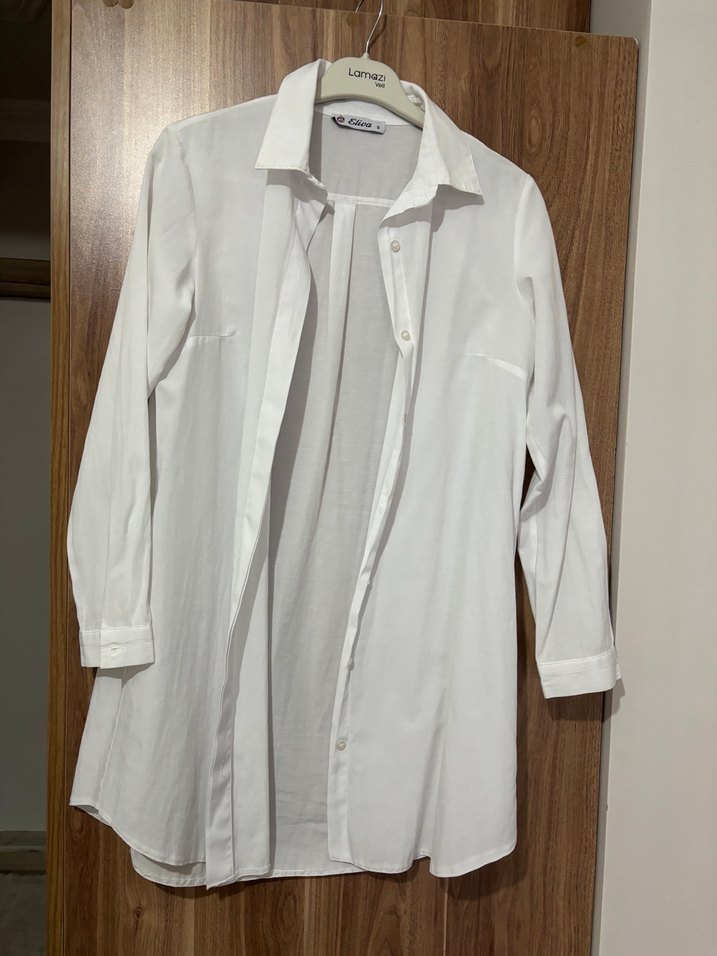 Düğmeli Beyaz Keten Midi Kadın Gömlek