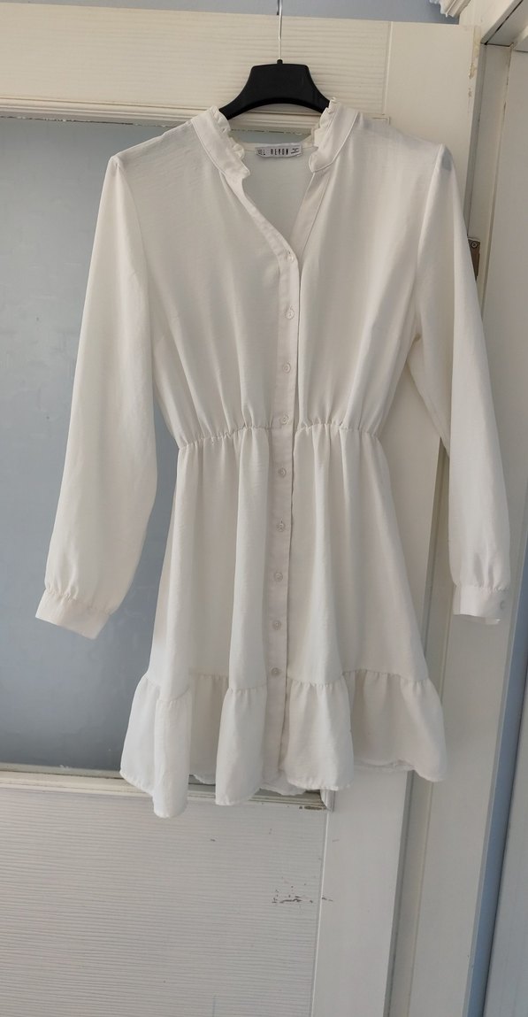 Düğmeli Beyaz Keten Midi Tunik
